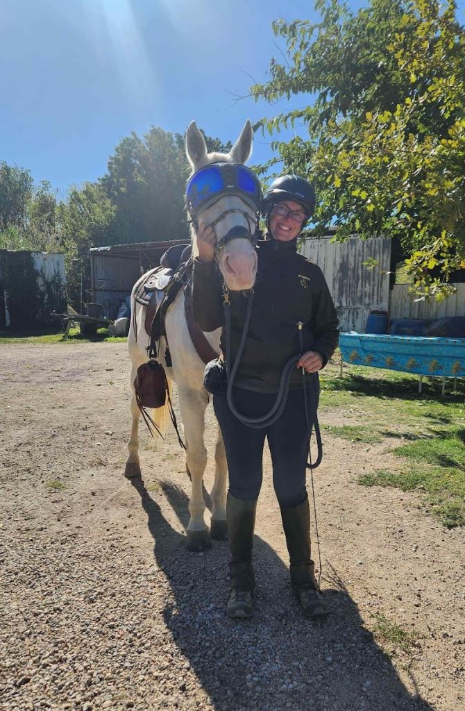 Pétou et Christian nous attendent impatiemment mais aussi, et ça c’est une belle surprise, Jean-Claude (SPERDUTO) et Bernard (WALTER), nos « dinosaures du 13 A CHEVAL » comme je les surnomme affectueusement, ainsi que Joss toujours aussi souriante et coquette dans sa tenue western.
