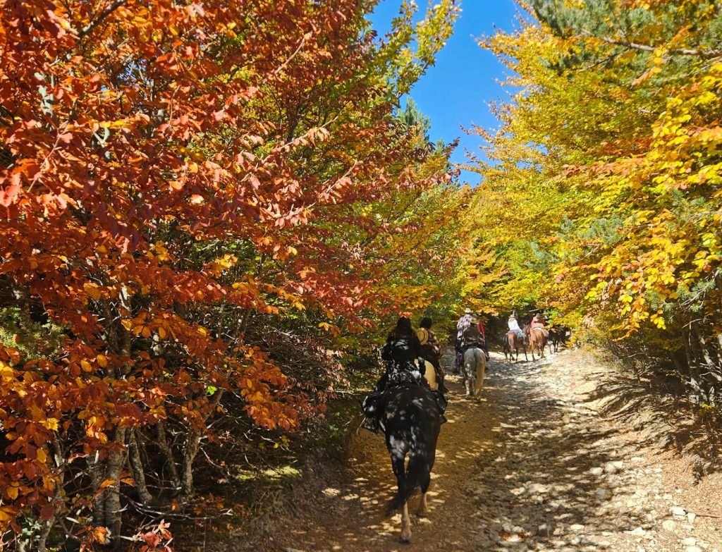 Puis direction le charmant village de Viens, que nous avons eu le privilège de traverser dans les petites ruelles. Après une bonne pause pour faire boire nos chevaux au lavoir nous reprenons la route …