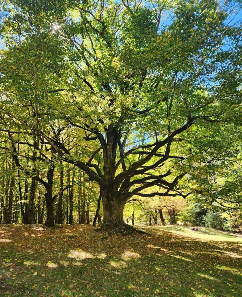 Nous prenons notre pique nique dans une jolie clairière sous les chênes bien à l’abri de ce petit crachin.
