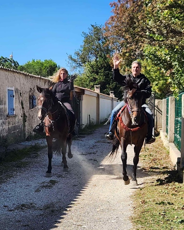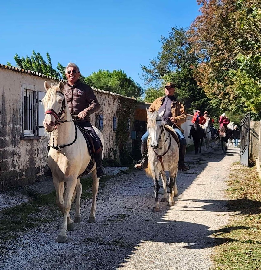 Une belle journée s’annonce, bien que venteuse, les cavaliers sont au rendez vous, 8h30, les camions sont là, tout le monde « astique » les chevaux. On enfile les vestes et c’est parti en file indienne, une quinzaine de chevaux se suivent, une belle balade au bord de l’Arc, les arbres nous protègent du mistral, au bord de l’Étang, les vagues déroulent et impressionnent les chevaux. Arrivée à l’écurie, nous retrouvons ceux qui sont venus en voitures et qui nous attendent avec leur appareil photo. Un bon apéro, avec des crevettes qui font plaisir à tout le monde, en attendant Enzo qui termine les pizzas.