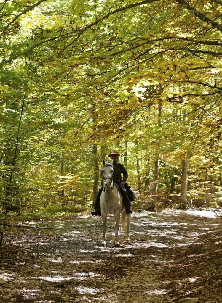L’après-midi nous repartons en direction des sources des Nayes. Nous traversons une forêt de chênes et de hêtres centenaires et nous rejoignons une belle piste montante où certains se sont donné à cœur joie au galop !