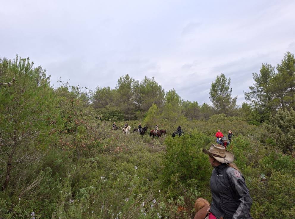 Le chemin contourne la partie Est de St Zacharie et nous arrivons aux sources des Nayes où les chevaux ont pu boire et patauger pour certains.