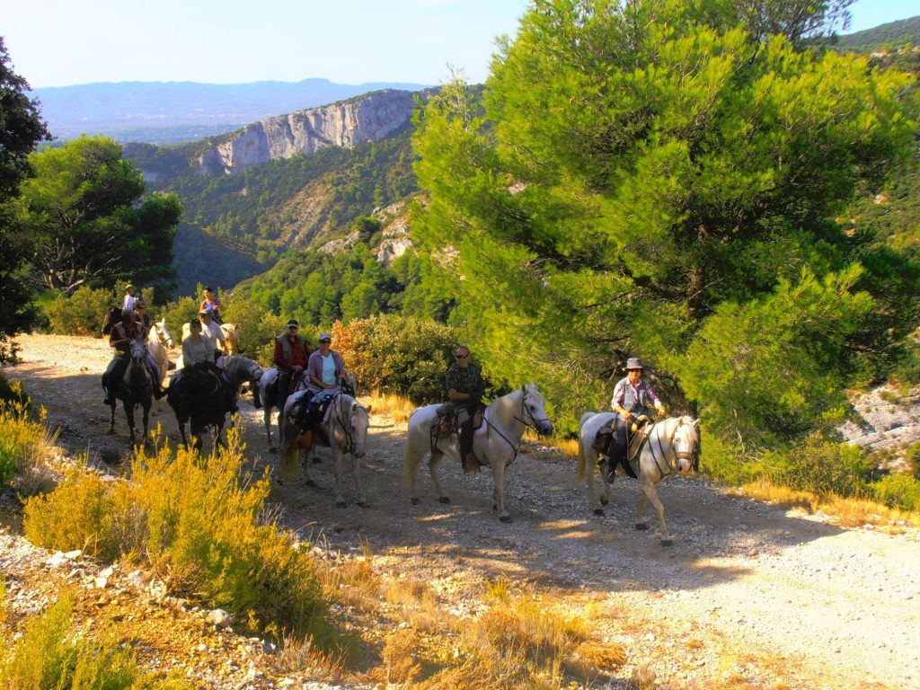 Ce matin on passe à l’heure d’hiver, il va falloir ne pas se faire surprendre par l’obscurité ce soir. Nous partons vers Banon, et empruntons des pistes un peu techniques car rocheuses où l’on doit souvent mettre pied à terre. Patricia, Pascale et moi coupons quelques branches éclatantes que l’on emporte sur nos montures, histoire de nous rappeler la beauté de ces ramures quand nous serons chez nous.