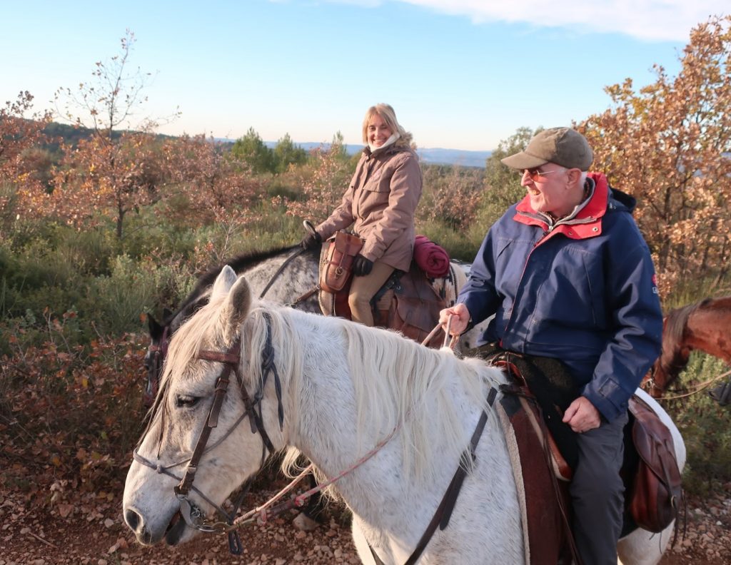Notre van étant hors service pour rapatrier nos chevaux, Michel s’était gentiment proposé, avant le départ du matin, de nous ramener après avoir rentré son cheval. On profite du goûter, des roulés mandarine et fraise préparés par Florence (notre guide), un vrai délice.