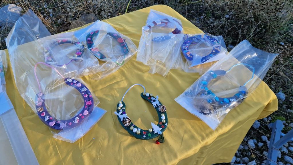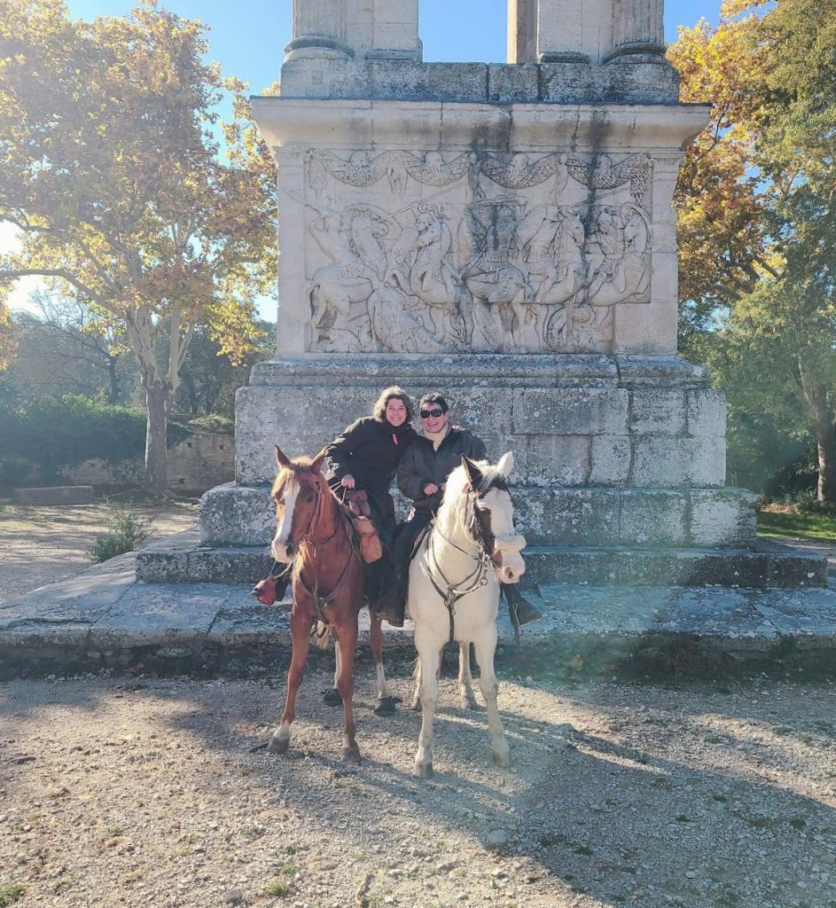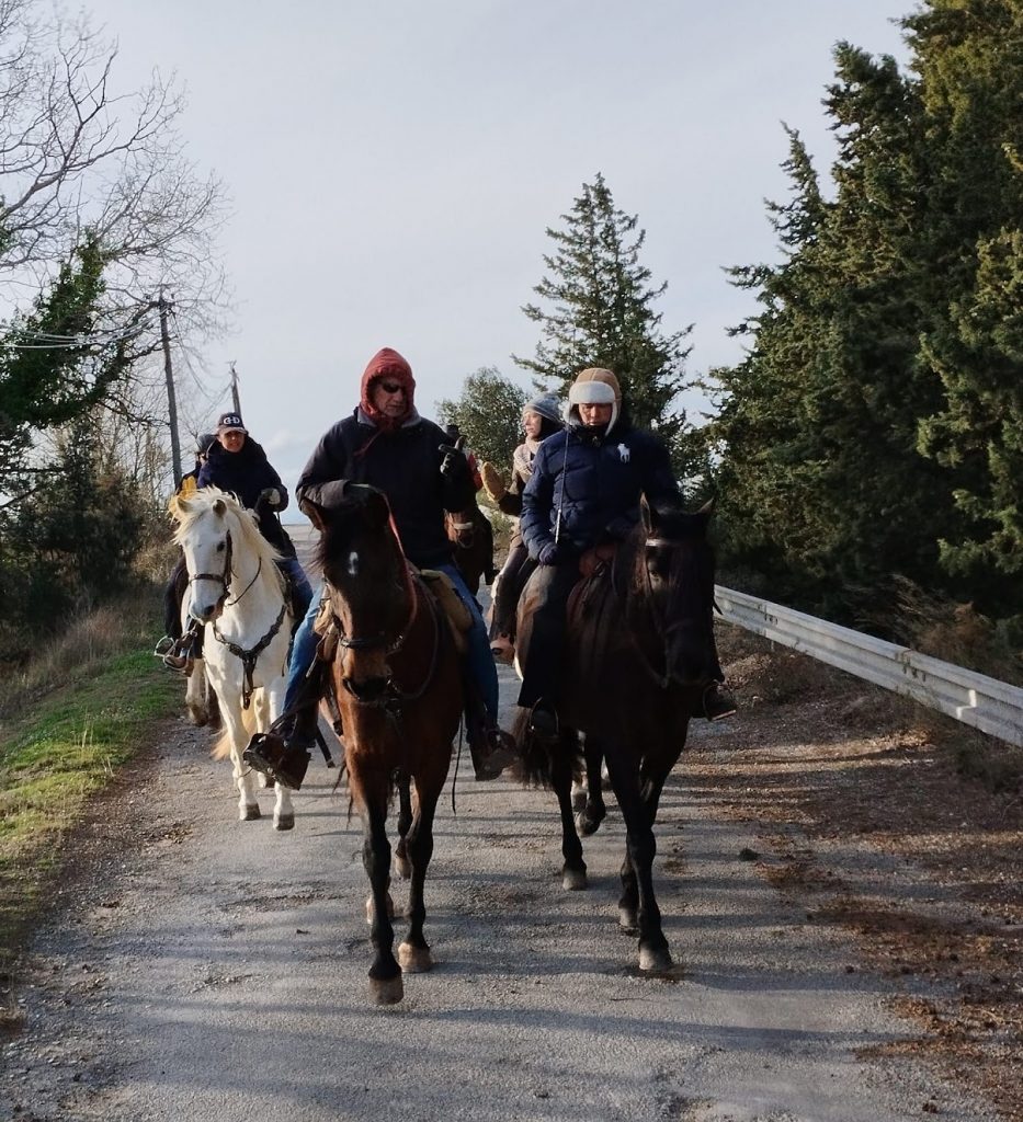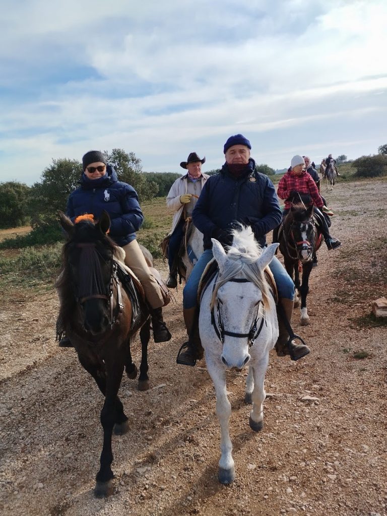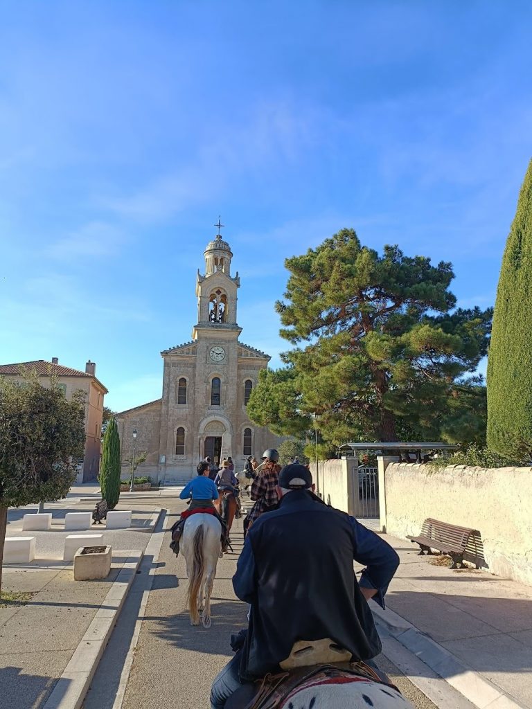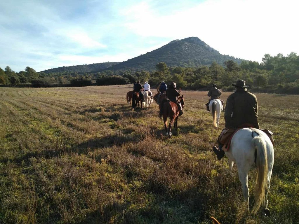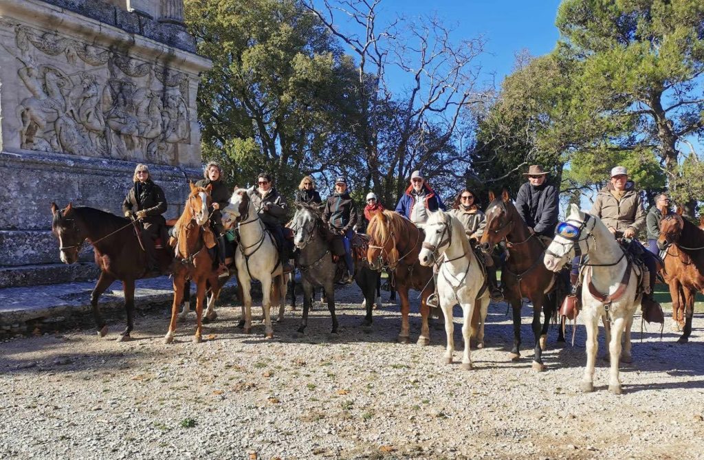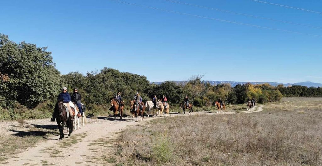 Après un pique-nique sous les rayons de soleil timide mais bien agréable en cette période hivernale, nous repartons par de jolis chemins boisés qui nous mènent au joli village de Jouques que nous traversons. A la grande fontaine qui coule en abondance, nos montures s’alignent autour pour boire, tels les chevaliers de la table ronde !