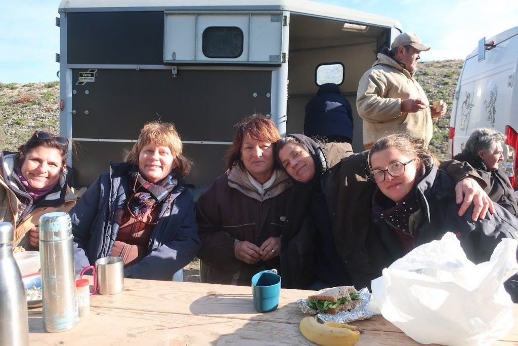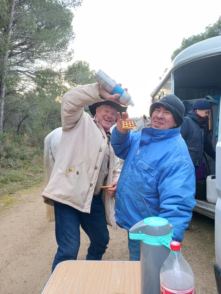 Arrivée au gîte nos chevaux rejoignent leurs parcs respectifs et une petite collation bienvenue en guise de 4 heures nous attend sous le chapiteau de Marc.